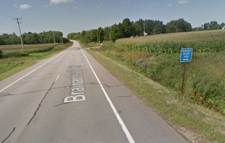 I finally came to the turn-off for the Almanzo Wilder Farm, unfortunately there were no images from the Google car along the route to the farm. You can see here that if is farm country with the fields of corn along the way.