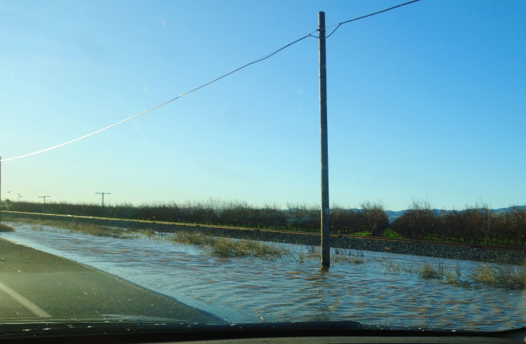I had to drive through water in several places, and even had to make a detour at one place near Patterson. Fortunately, the detour was not very long.