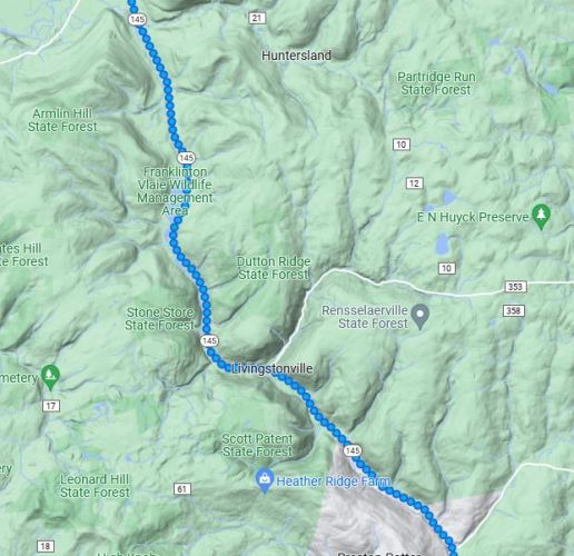 The virtual hike from the Schoharie was through farm country and valleys between mountains before dropping down into the Hudson River valley.