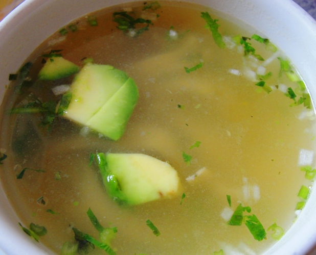 Here is a nice chicken soup with avocado. I really liked the fresh avocado with the very simple chicken soup.