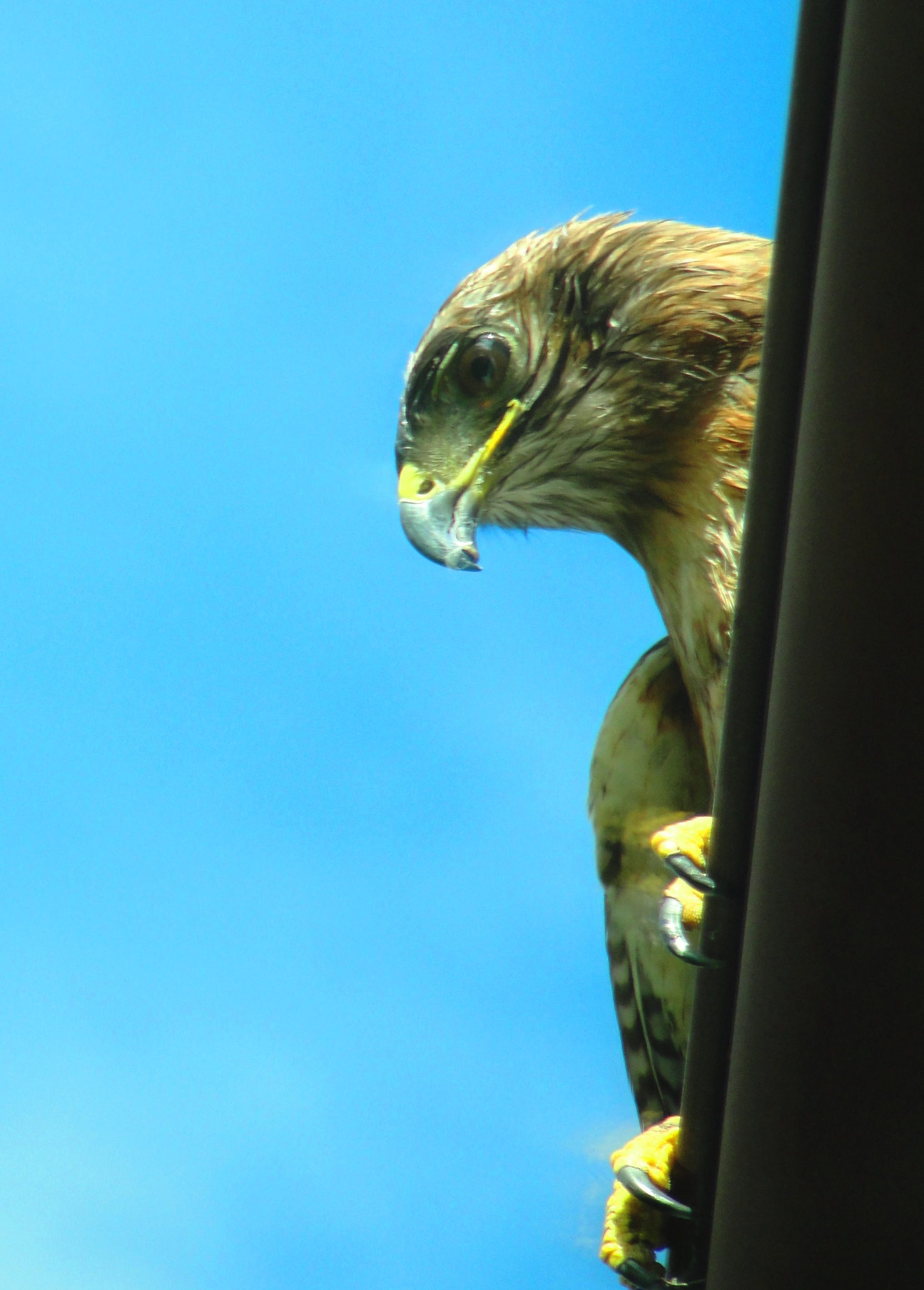 I also see a lot of Red Tailed Hawks in the spring, especially on my commute over the Altamont each day. I don’t see them this close up though. I took this picture while attending a team building event at a golf course. The hawk landed on the roof above the large plate glass windows and I was able to get some nice pictures.
