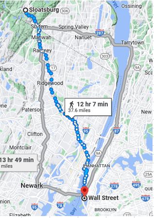 The destination for this segment of the virtual hike was the Charging Bull statue which is near wall street and is representative of Wall Street.