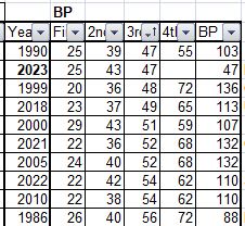 This one is sorted by third round BP. You can see that it only went up by four as only one 1/2 seed won in the round. The 47 BP is tied for the lowest after the third round.