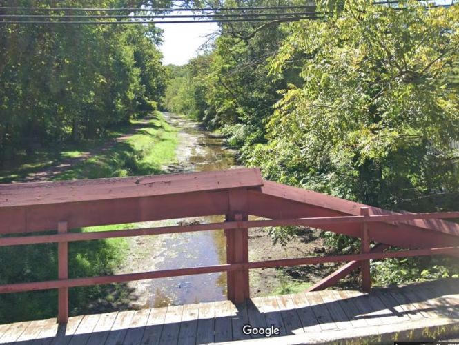 The virtual hike from Washington Crossing first went over the Delaware canal on a bridge. You can see the remains of the canal and tow path.