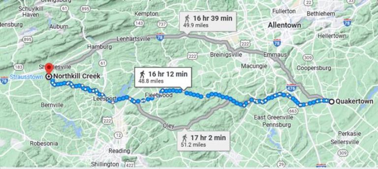 The virtual hike from Quakertown went along country roads as it headed west.