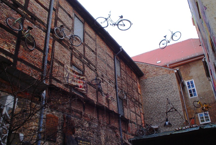 I also thought of this alleyway in Germany with bikes hanging off the walls and in the sky.