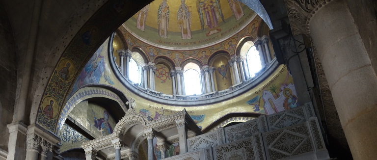 Here is a picture of the great dome over the Holy Edicule. This picture was taken back in 2015 before restoration work began on the structure. I was back in June of 2016 when the restoration work was underway and took some interesting pictures of the restoration process.