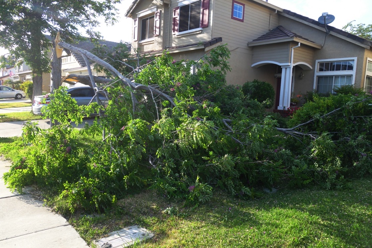 Fortunately the tree did not hit the house when the trunk snapped in half. If the tree had been only a little taller it would have caused some damage to the house.