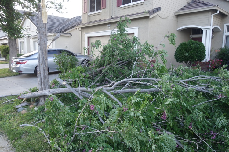I had just headed out to take a walk, and saw that a neighbor down the street had a tree damaged by the high wind.