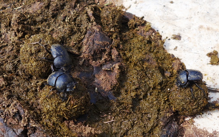 Have you ever seen dung beetles at work? It was interesting to watch as the beetles were rolling up balls of dung and moving them around. It was nice of the goats to leave them some food 🙂