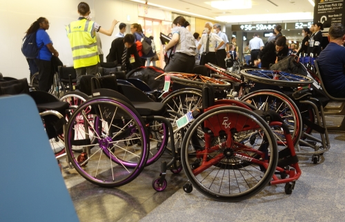 The flight was a bit delayed, but it was for a very good reason. They had to make sure they got all the wheelchairs on board and the athletes seated. I said hi to some of the basketball players and wished them good luck at the championships.