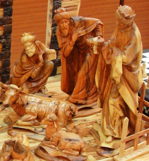 Here is an even larger nativity set carved from olive wood. The large figures in this set come up to my waist and are very detailed.